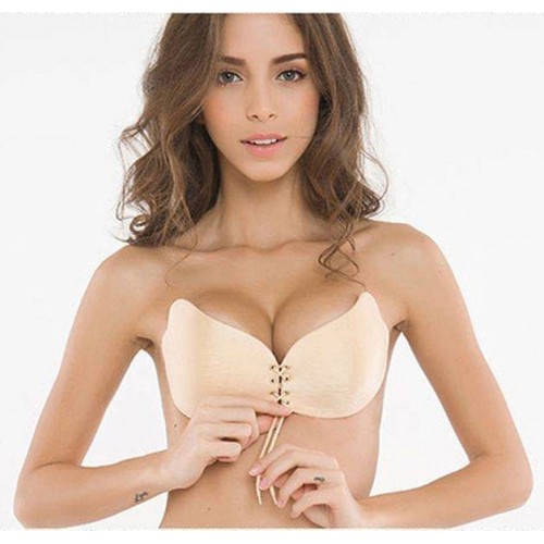Силиконов самозалепващ се сутиен с повдигащ ефект и връзки отпред без задна част.